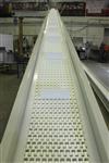 Изготовлена конвейерная система для перемещения упаковок с продукцией. Конвейерная система состоит из 3-х конвейеров: 2-х конвейеров с модульной лентой (подвесных) и ленточного конвейера. - общая длина конвейеров более 30 метров.