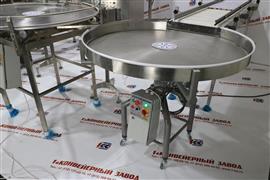 В частности, конвейерная система для линии розлива может комплектоваться накопительным поворотным столом, а также подающим поворотным столом для подачи бутылок в линию розлива.