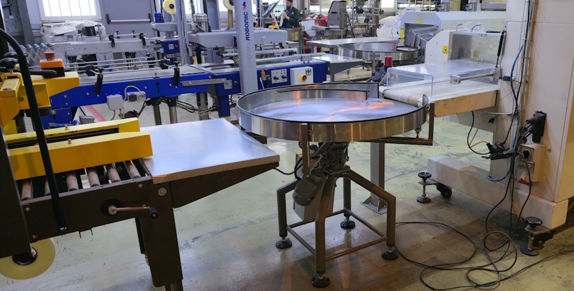 В частности, конвейерная система для линии розлива может комплектоваться накопительным поворотным столом, а также подающим поворотным столом для подачи бутылок в линию розлива.