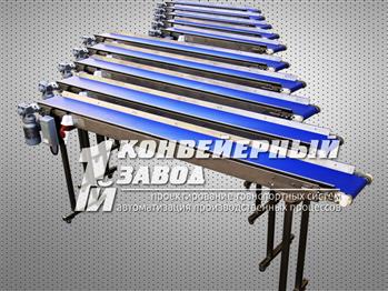 Ленточный конвейер (ленточный транспортер) самый распространенный и популярный транспортер, предназначен для транспортирования штучных грузов (пачек, коробок, пакетов с упакованным продуктом). Имея простую и дешевую конструкцию, ленточный конвейер позволяет решать многие задачи. Ленточный конвейер может быть как горизонтальным так и наклонным. Если наклонный ленточный конвейер имеет угол наклона более 20°, то применяются вертикальные упоры (перегородки), которые привариваются к ленте и не дают грузу скатываться вниз. Для сыпучих грузов применяют приваренные боковые гофроборта.