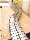 Спроектирован, изготовлен и подготовлен к отгрузке 2-х рядный пластинчатый конвейер. Конвейер будет использоваться на Хлебокомбинате на Дальнем Востоке для перемещения хлебных форм из печи. Использована магнитная нержавеющая пластинчатая цепь шириной 82,5мм (Италия) вкупе с магнитными поворотными трэками; цепь, за счет отсутствия зацепных "крюков" с низу, уменьшает трение и появление со временем скрипов на поворотных участках цепи.