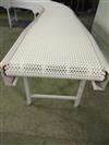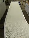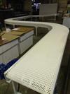 Изготовлен конвейер с модульной лентой для перемещения пельменей к морозильной камере. Длина конвейера около 17 метров с 3 поворотами под 90°. Ширина модульной ленты 600 мм, скорость ленты 7 м/мин с регулировкой скорости, привод 0,75 кВт. Конвейер изготовлен из углеродистой стали с порошковой окраской.
